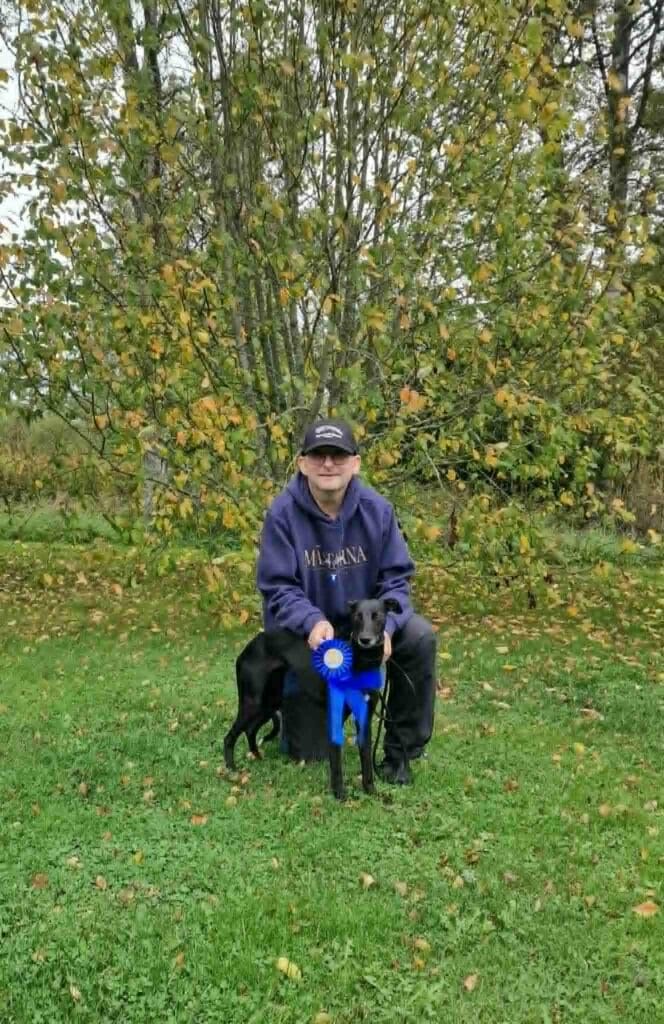 Eivor! Så snäll, gosig, lyhörd och glad tjej som älskar sin frisbee´, hon är en väldigt okomplicerad hund, hon tog sin Lure coursing licens i slutet på 2024, och hon har även klarat sina utställningsmeriter så hon kommer att tävla i CACIL klass.